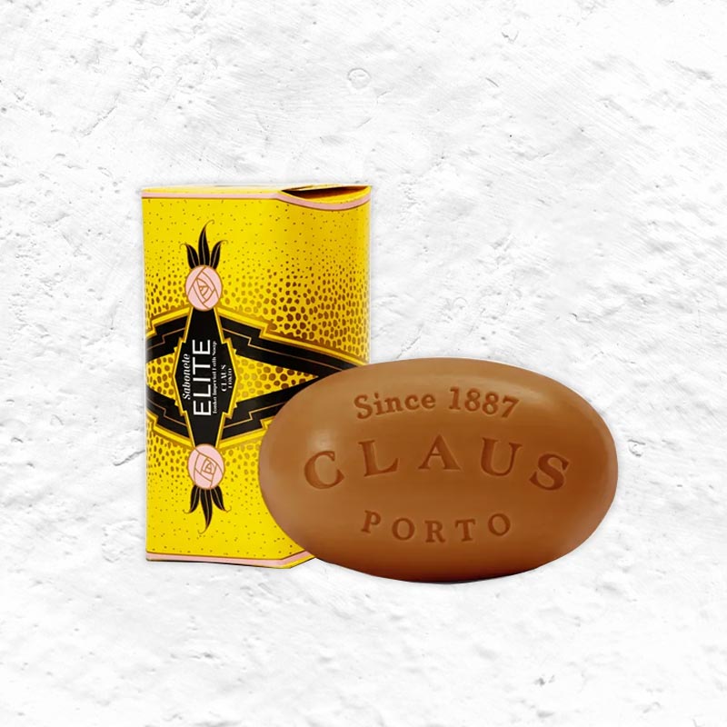 Warm and sensuous, Elite Tonka will comfort and delight your senses. Elite’s silky formula contains shea oil, a well-known ingredient for its nourishing properties. It gently cleanses and scents the skin, giving a velvety feeling. Each soap is wrapped in a unique design that has made the brand famous for over 130 years; Elite’s packaging replicates a 1930s design from the Claus Porto archives, featuring pink roses and a bold black motif against a mellow yellow backdrop.