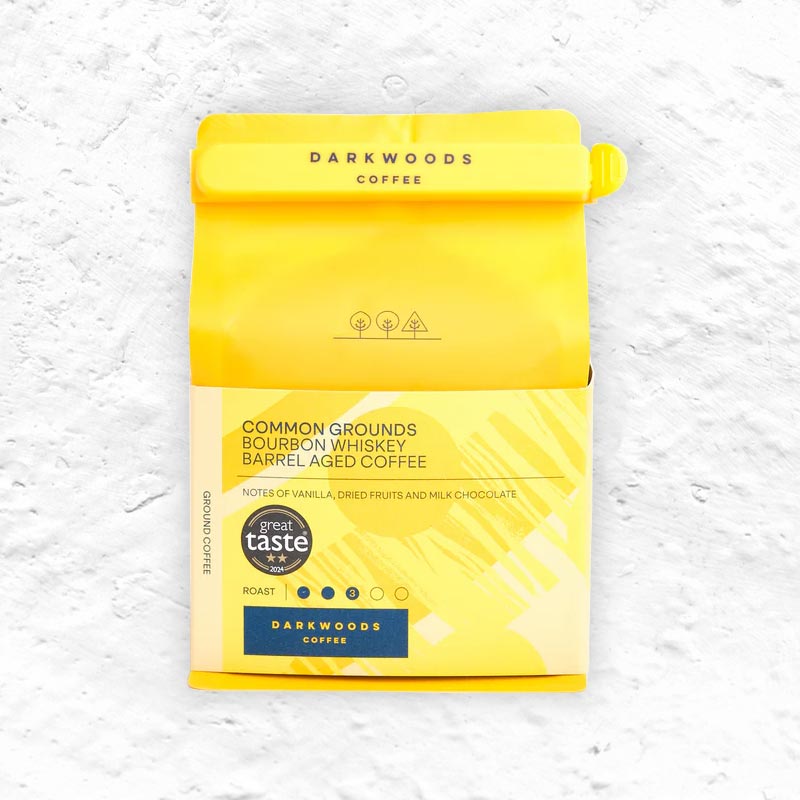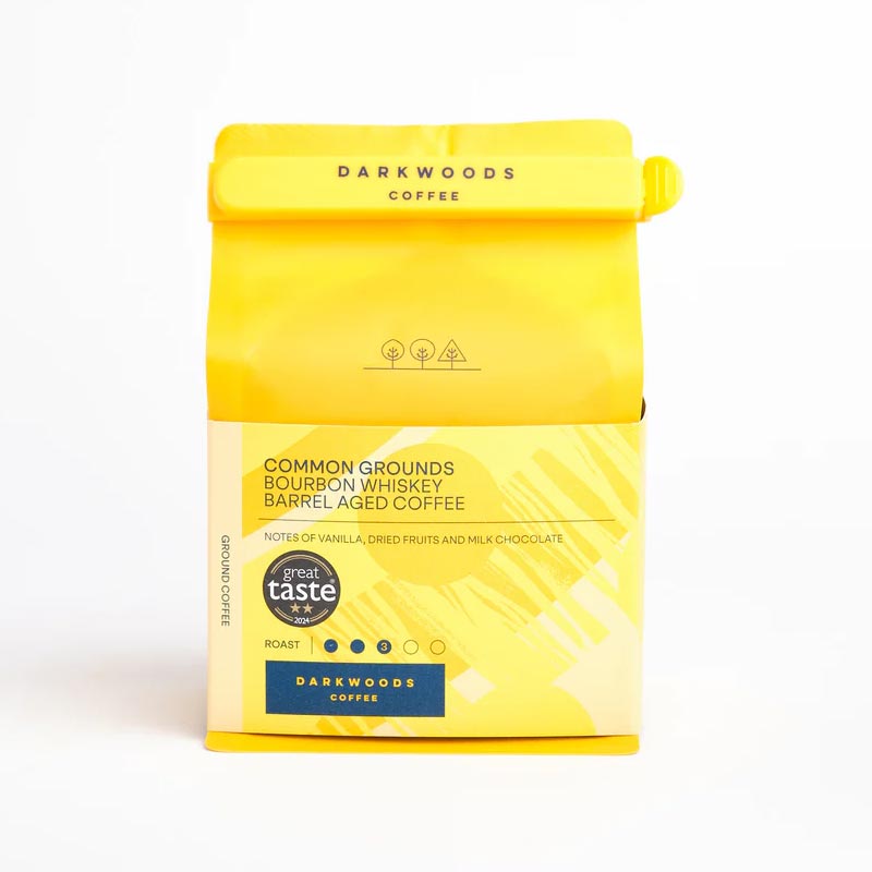 Common Grounds Bourbon Whiskey Barrel Aged Coffee by Dark Woods - Ground coffee, 250g