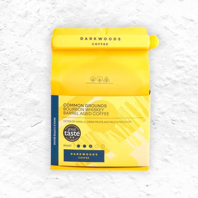 Common Grounds Bourbon Whiskey Barrel Aged Coffee by Dark Woods - coffee beans, 250g