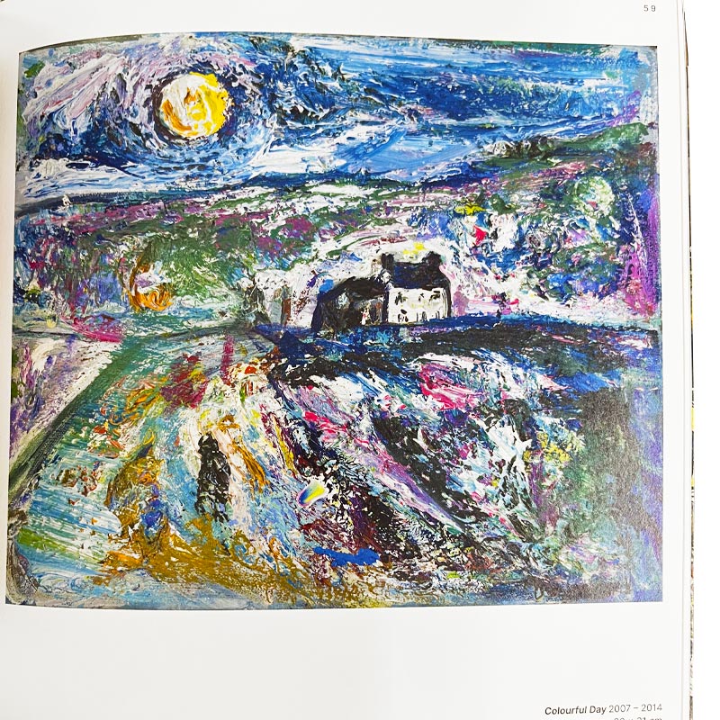 Powerful and imposing yet intimate and inviting too, these canvasses are inspired by the rural Yorkshire landscape. They are paintings with visceral qualities in which one can immerse oneself: peaks and villages, Dales and farmhouses, swirling skies, shining suns, tiny humans making monumental efforts.