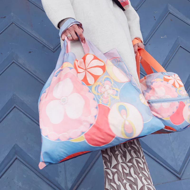 Light as a feather, super-strong and made from 100% recycled GREEN CIRCLE® taffeta, the LOQI shopping bags fold up into a tiny parcel, ready to be popped in your pocket and used at a later date.